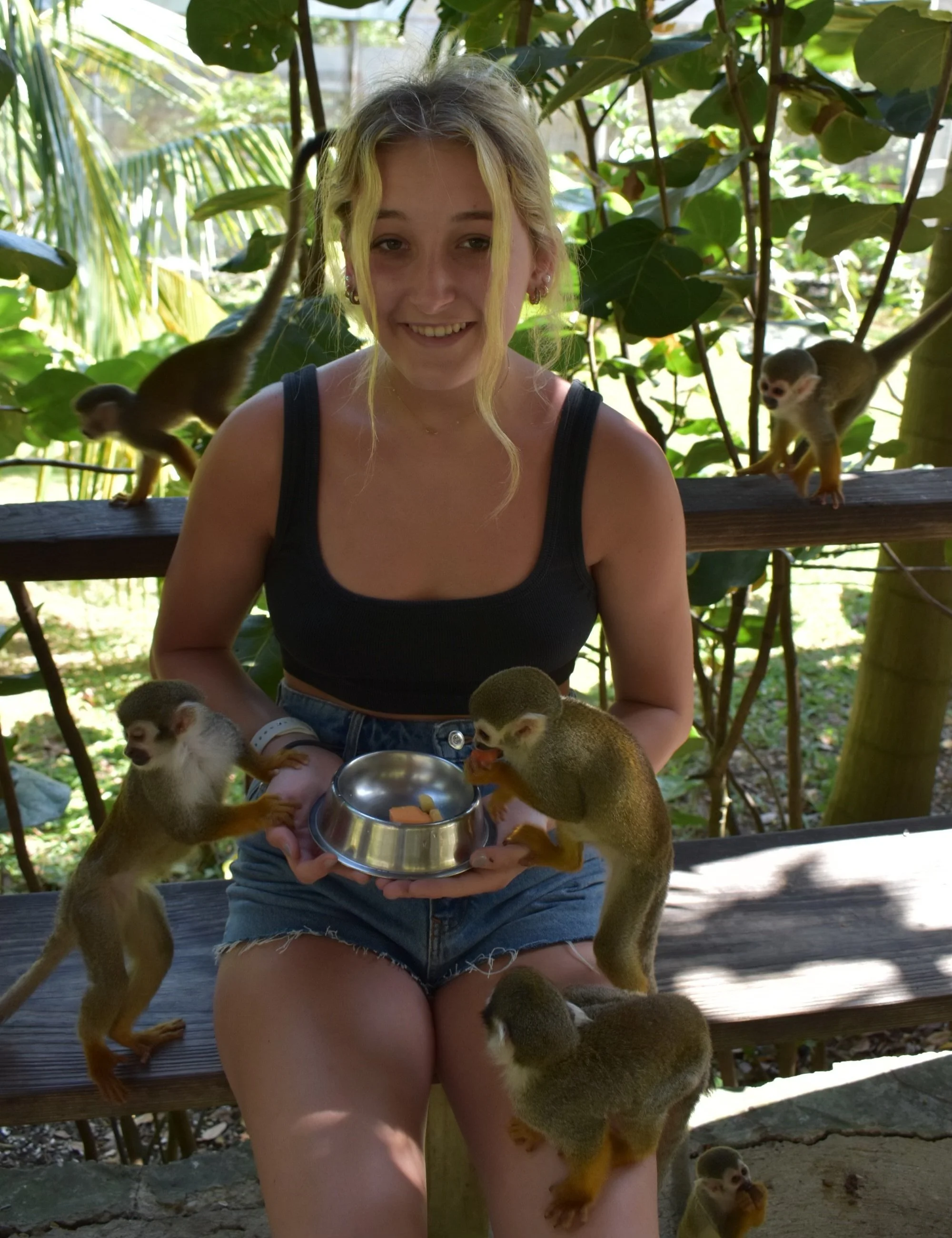 Kelsey meeting monkeys at a sanctuary in the Dominican Republic.