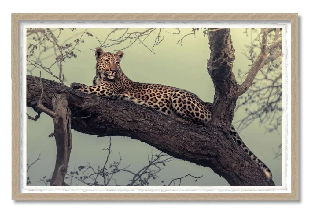 Framed 46 × 30” Fine art wild leopard print, titled, “A feeling like no other” by Martin Meyer.