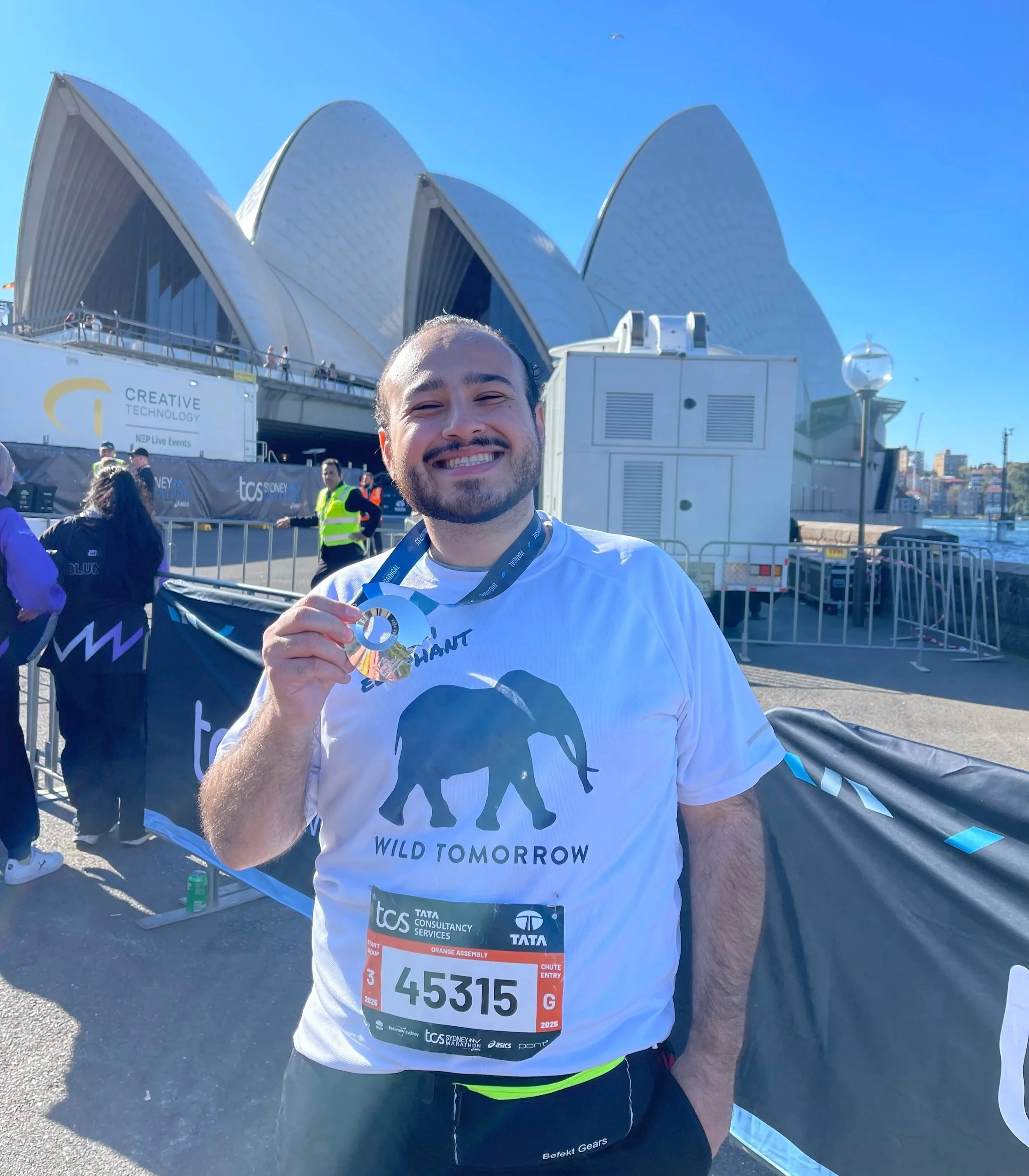 Adrian Portales - a proud finisher of the Sydney 2025 marathon for Team Elephant!