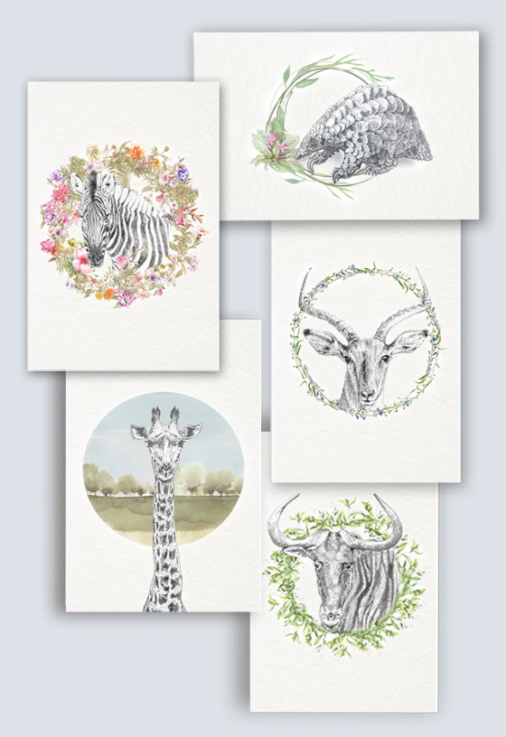 Benji, TC’s adorable mini goldendoodle is one of many pets adopted during lockdown. But Benji was more than just a pet; he was the inspiration for a business. It was Benji, living in his Brooklyn apartment, that really opened his heart up and inspired TC to help other animals as well. Benji’s of Brooklyn are hand-made stationary cards. For Wild Tomorrow’s annual gala in 2021, TC designed a custom stationary card collection, Wild Card. The Wild Card Set includes beautiful prints of a pangolin, a zebra, an impala ram, a giraffe, and a blue wildebeest – all from our Greater Ukuwela Nature Reserve (apart from the pangolin, found at our neighbors at The MunYaWana Conservancy). Each of these animals represents conservation in action for us - when Wild Tomorrow first purchased the land in 2017, we had to restore and rewild the habitat. Rewilding meant reintroducing wild species (such as giraffe, zebra, wildebeest, and more) to bring back the ecological balance.